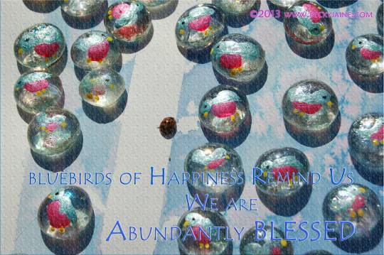 As we begin 2013, in the spirit of the bluebirds of happiness I offer YOU a special blessing through a flock painted by my daughter and I; little gemstones that we are releasing out to our world in ♥ metta ♥.