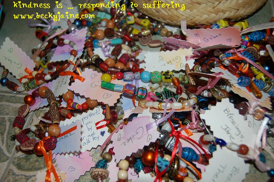 I visited NOVA’s web site and researched the healers in the film. I was able to locate Ruth Kennedy and get in touch with her to investigate if a kindness creativity project would have any value to the women. This delightful woman guided me to determine our gift and Blessing Bead Bracelets were to be made.